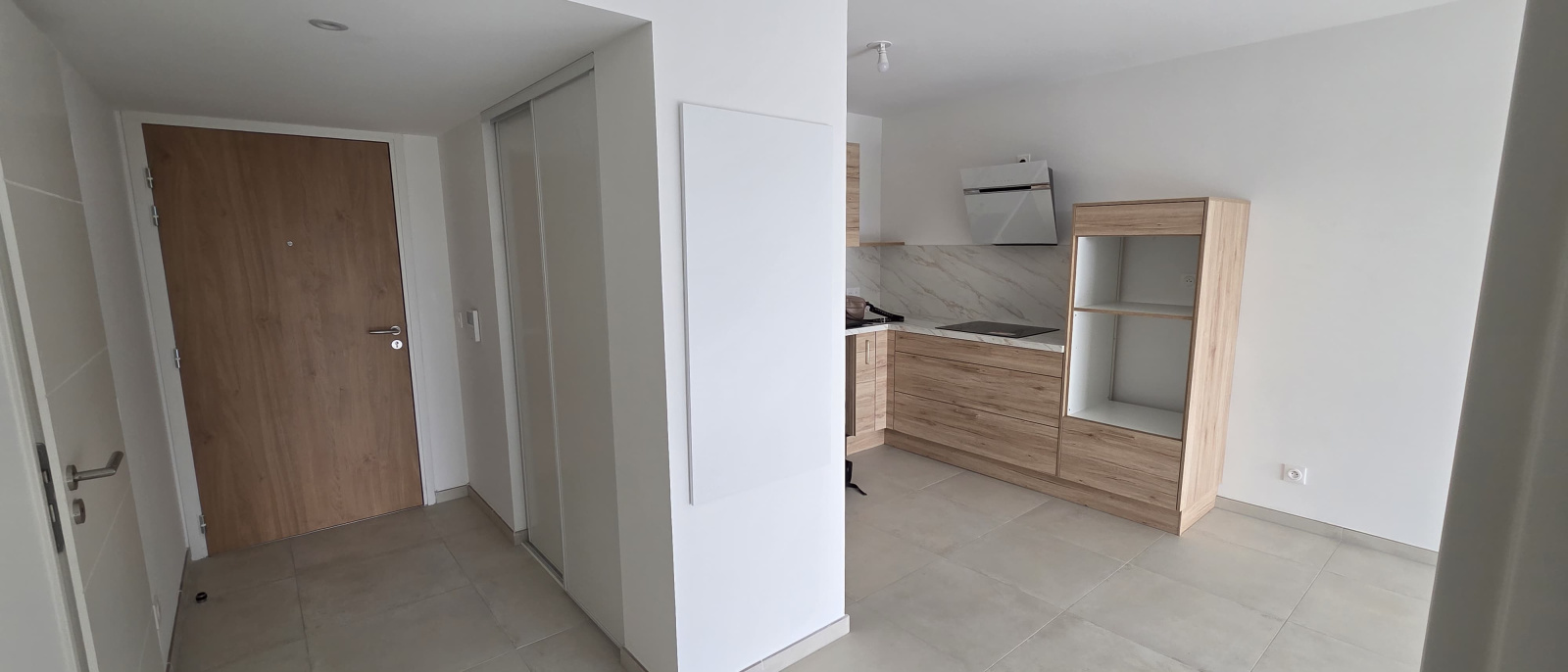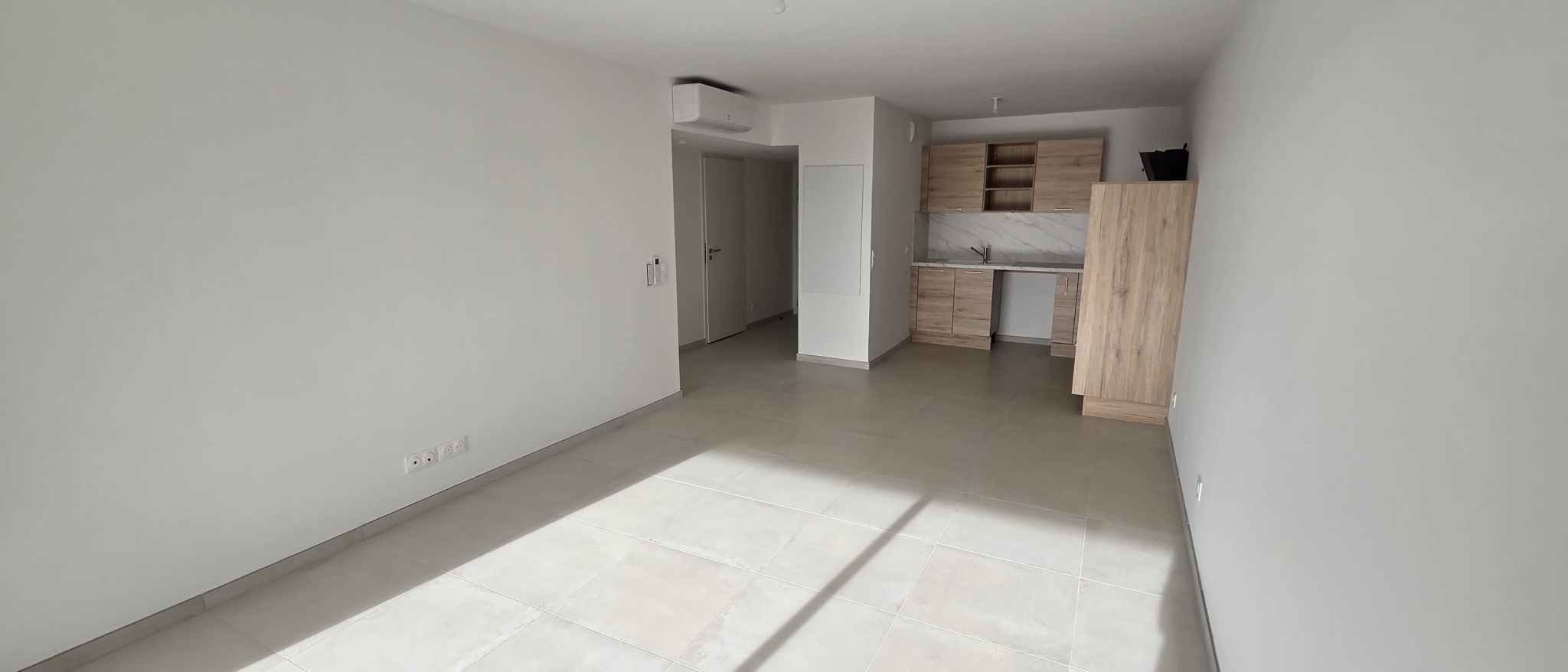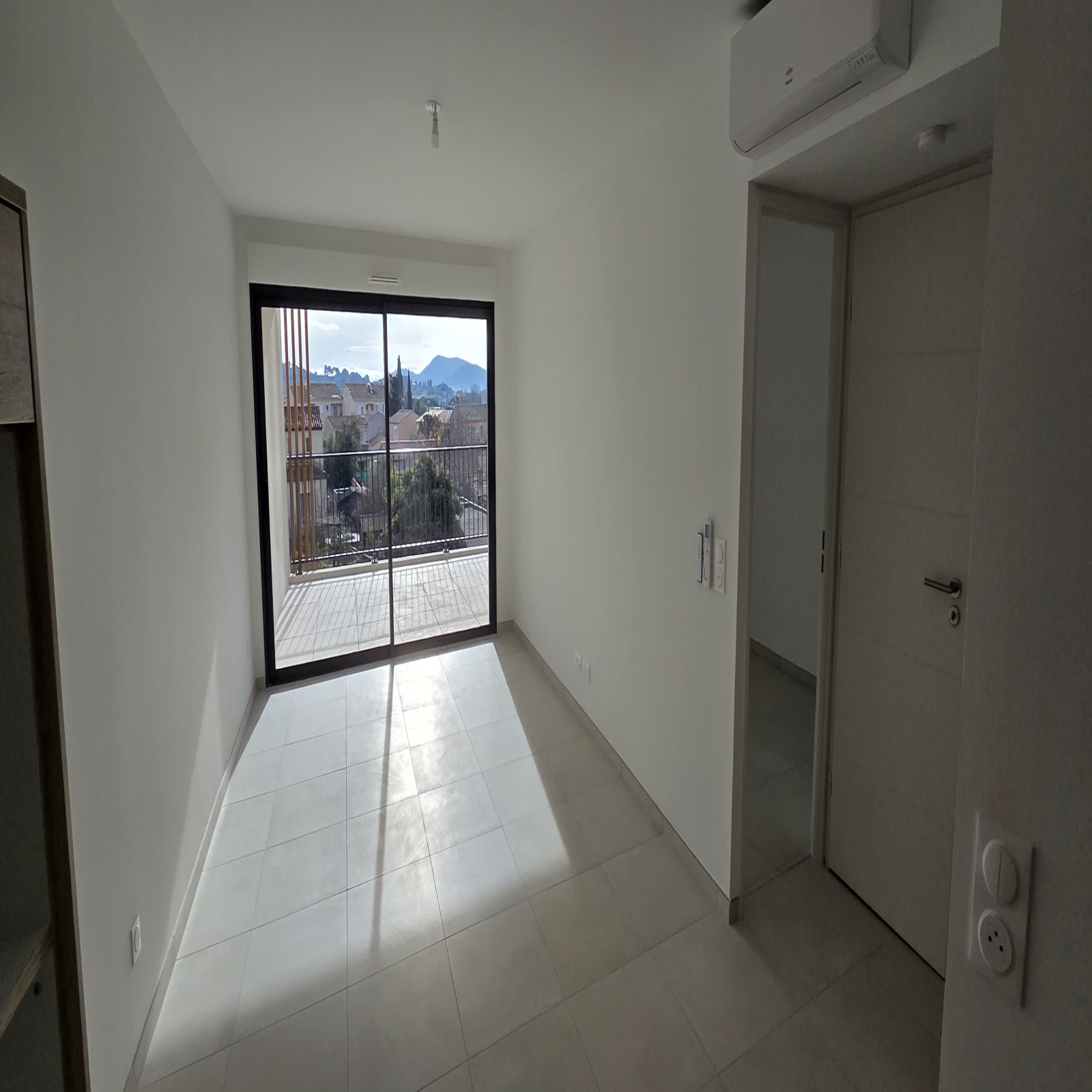 Libre IMMEDIATEMENT - Dans résidence recherchée et sécurisée - Appartement neuf situé au 2ème étage (avec ascenseur) comprenant entrée avec placard, séjour climatisé et lumineux avec coin cuisine aménagée et semi-équipée donnant sur terrasse avec vue dégagée, une chambre avec placard, une salle d'eau avec wc