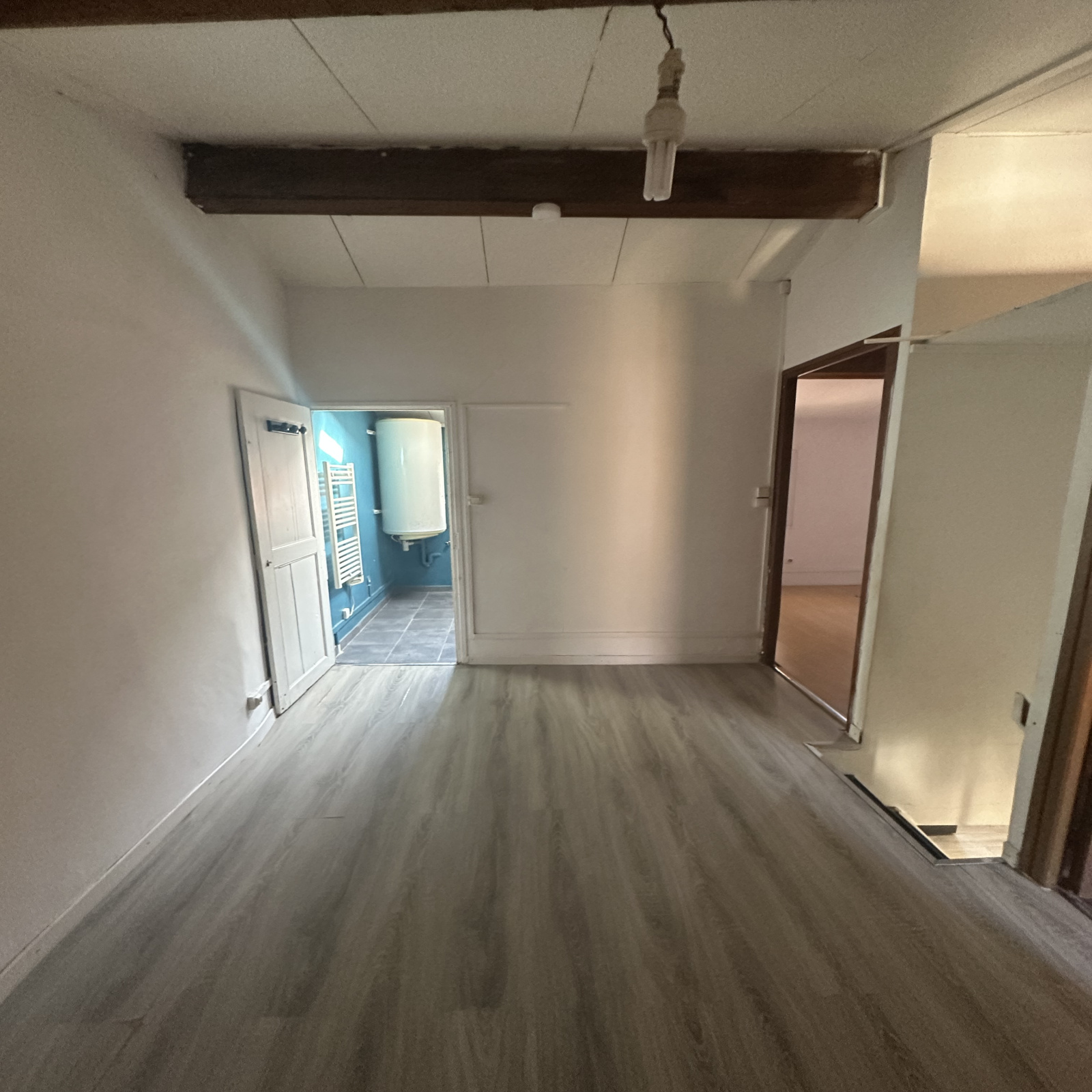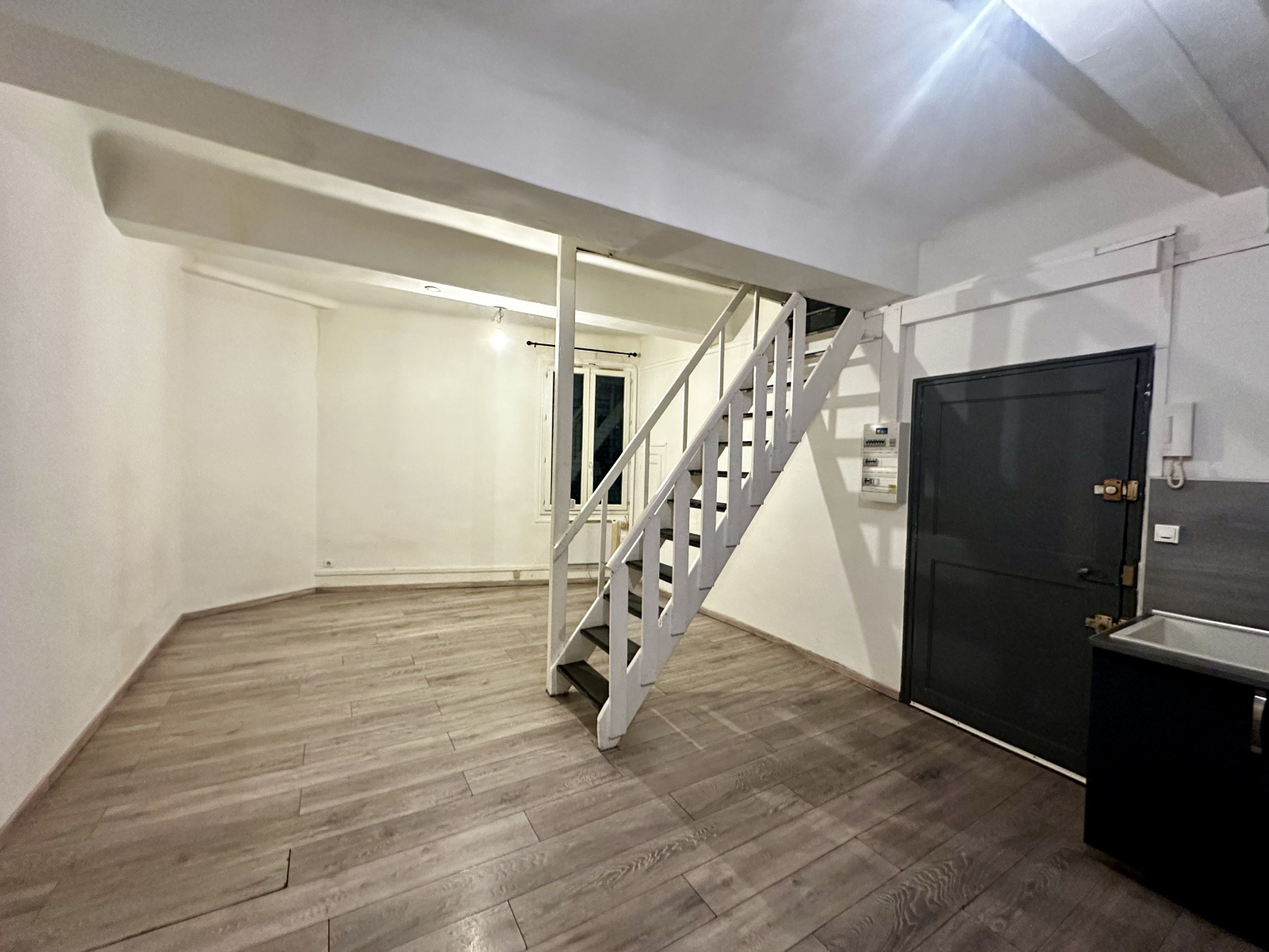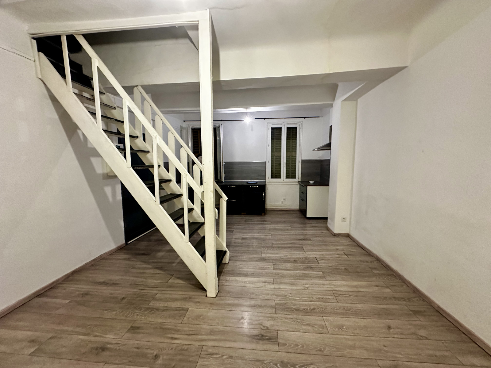 Place des Armistices - Libre rapidement - Appartement T3 de 63 m2 en duplex situé au 2eme et dernier étage comprenant une pièce principale avec coin cuisine, un escalier accédant à la partie duplex comprenant un dégagement, 2 chambres, 1 salle d'eau avec wc.