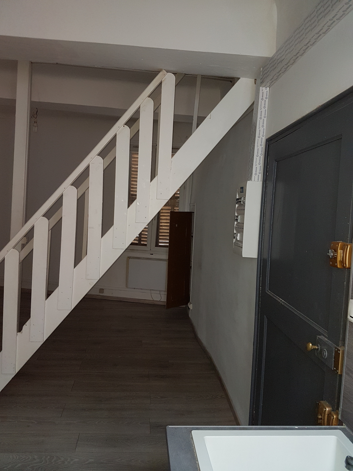 Place des Armistices - Libre novembre - Appartement T3 de 63 m2 en duplex situé au 2eme et dernier étage comprenant une pièce principale avec coin cuisine, un escalier accédant à la partie duplex comprenant un dégagement, 2 chambres, 1 salle d'eau avec wc.