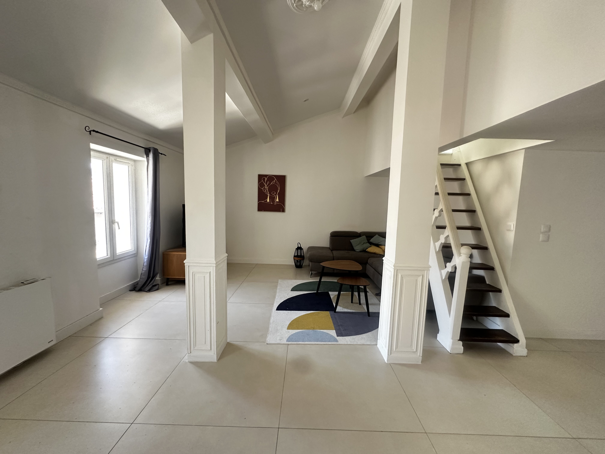 Libre rapidement - secteur centre-ville - Appartement meublé T4 en Duplex de 77m2 comprenant : Hall d'entrée, grand séjour/salon , cuisine, salle d'eau avec douche+ wc, chambre et 2 chambres mansardés en étage. Appartement meublé avec beaucoup de gout et prestations de qualité.