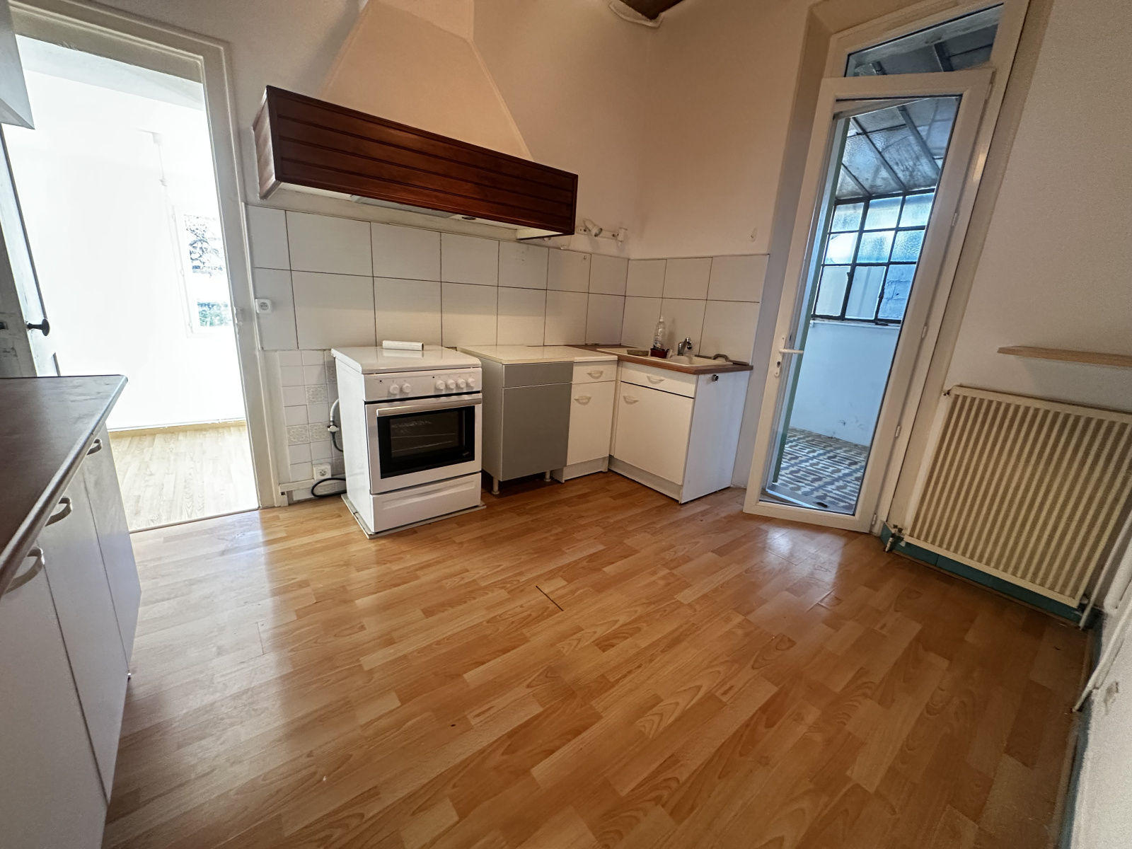 Libre immediatement - Secteur calme et recherché 4 Chemin des Routes - Charmant bas de villa T4 de 90m2 comprenant : Hall-dégagement, séjour/salle à manger, cuisine avec véranda attenante, salle d'eau avec wc, une chambre et deux communicantes dont une donnant sur cave en sous-sol