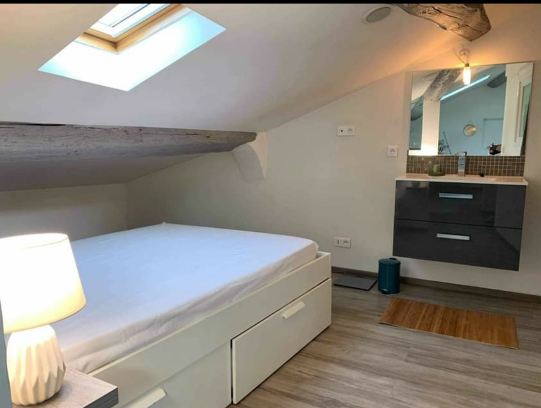 Libre OCTOBRE - Avenue de la Ferrage - Sympathique studio type loft meublé situé au 3ème et dernier étage (sans ascenseur) comprenant belle pièce avec séjour ,cuisine amenagée et équipée, chambre ouverte et salle d'eau ouverte , wc indépendant, placards