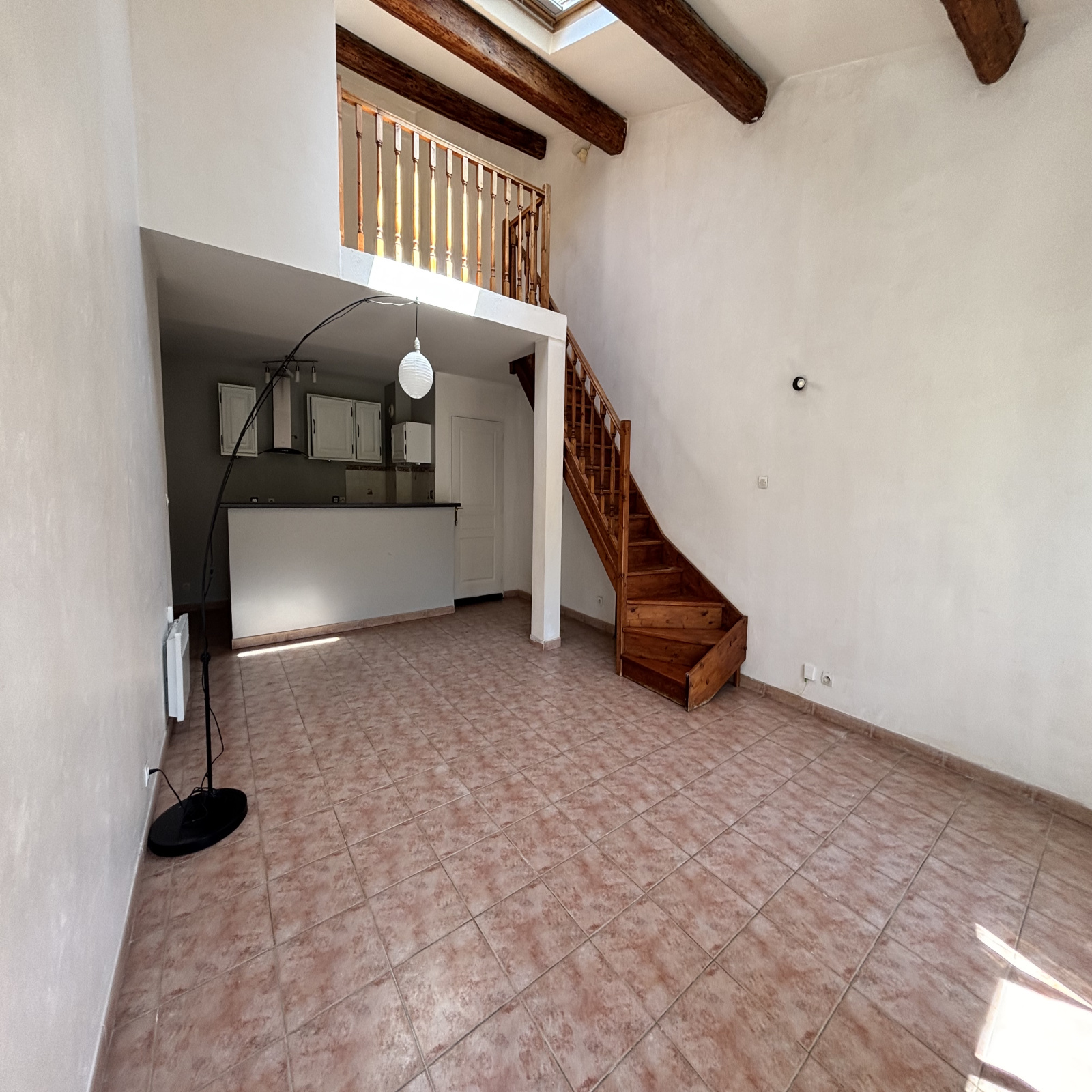Libre immédiatement - Avenue des Aiguiers en face le cinéma - Spacieux appartement T3 en duplex de 70 m2 situé au 2ème étage (sans ascenseur) comprenant séjour avec coin cuisine, deux chambres dont une mansardée, une salle de bains, wc indépendant