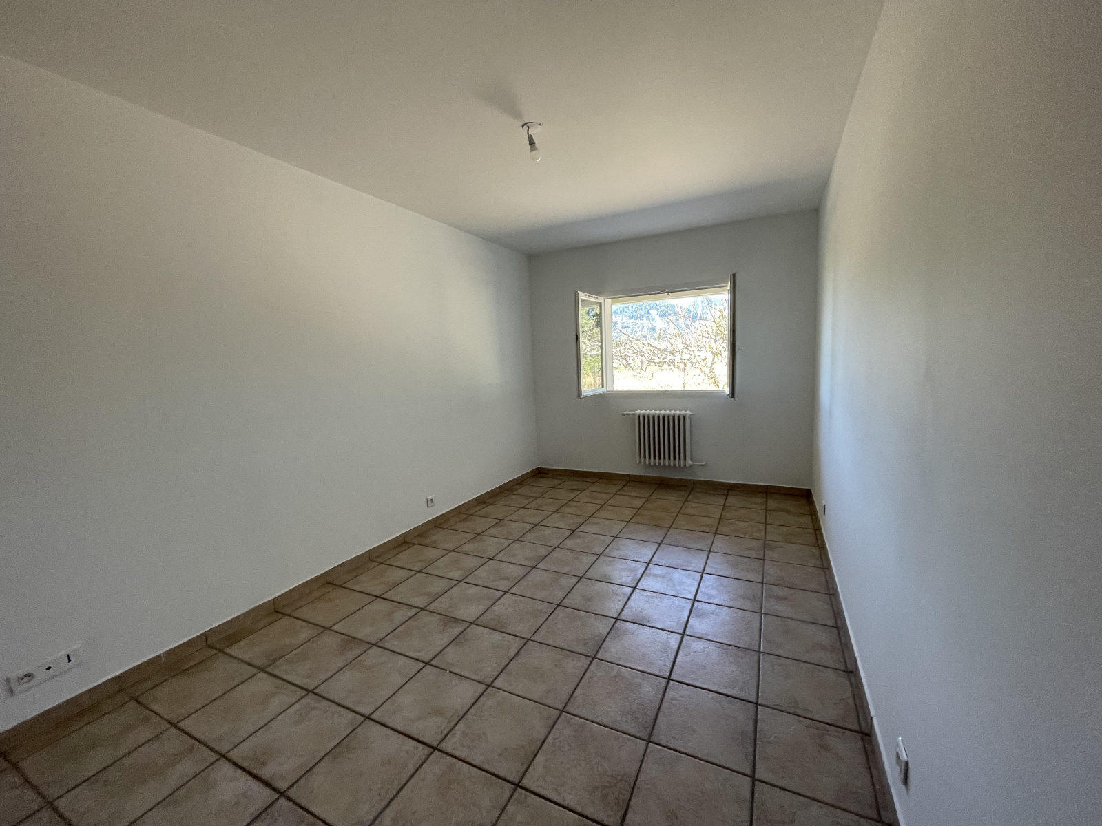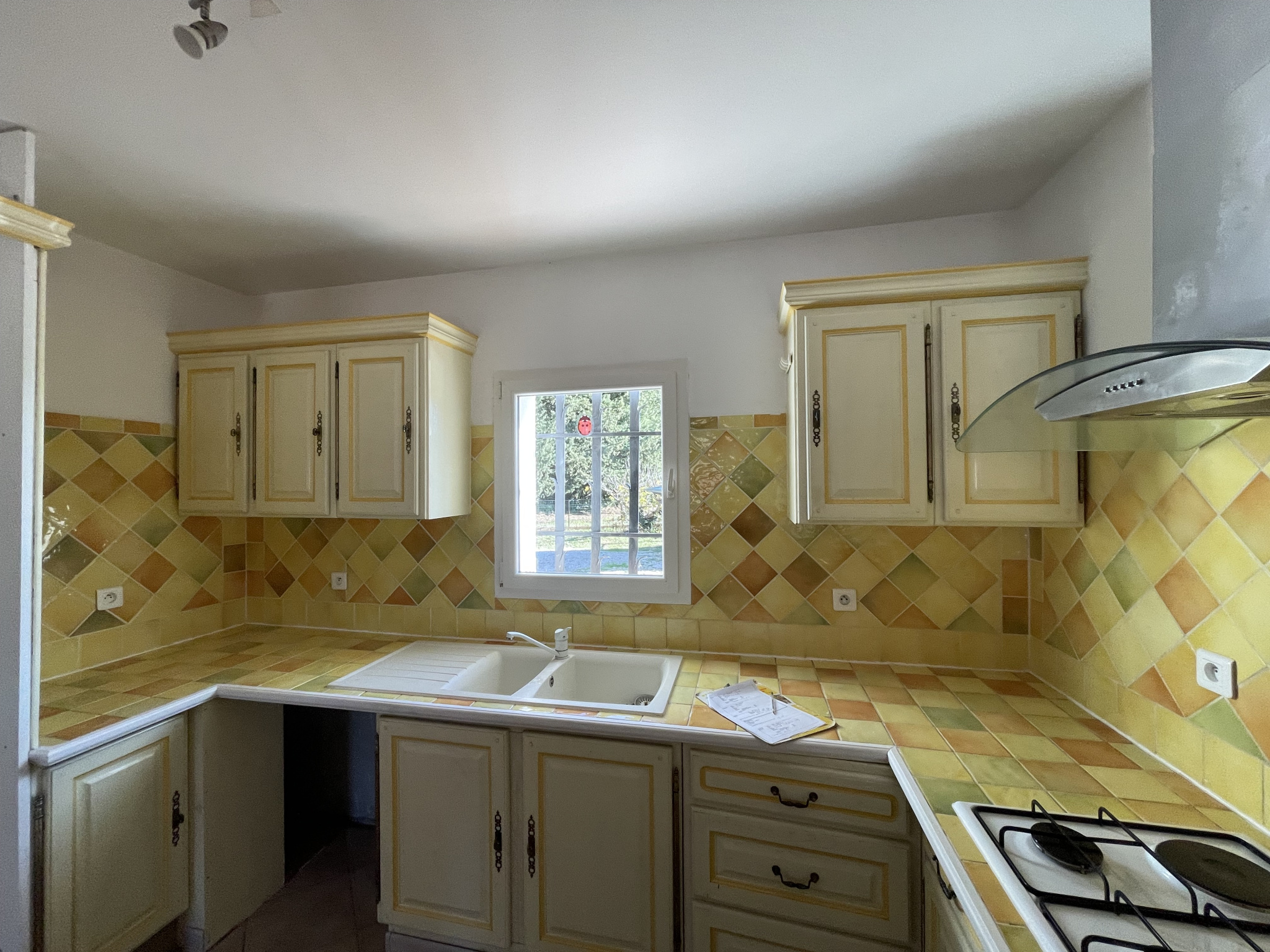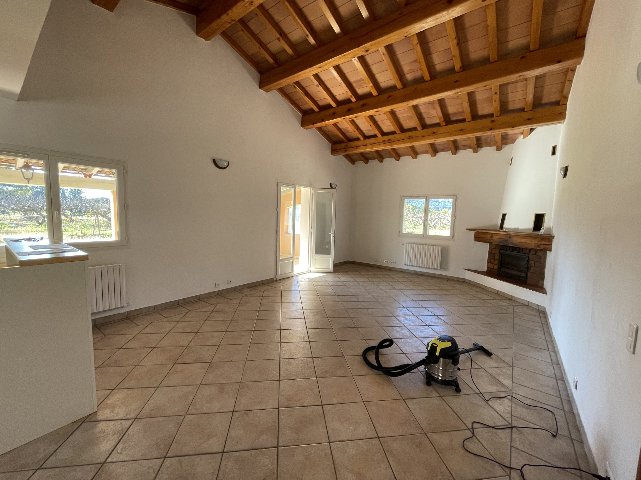 Libre FIN AVRIL - Chemin des Maurettes - Une maison de plain-pied de 110m2 comprenant : hall d'entrée avec placards, séjour avec coin cuisine donnant sur terrasse couverte, dégagement, cellier, wc indépendant, 3 chambres, salle d'eau, buanderie