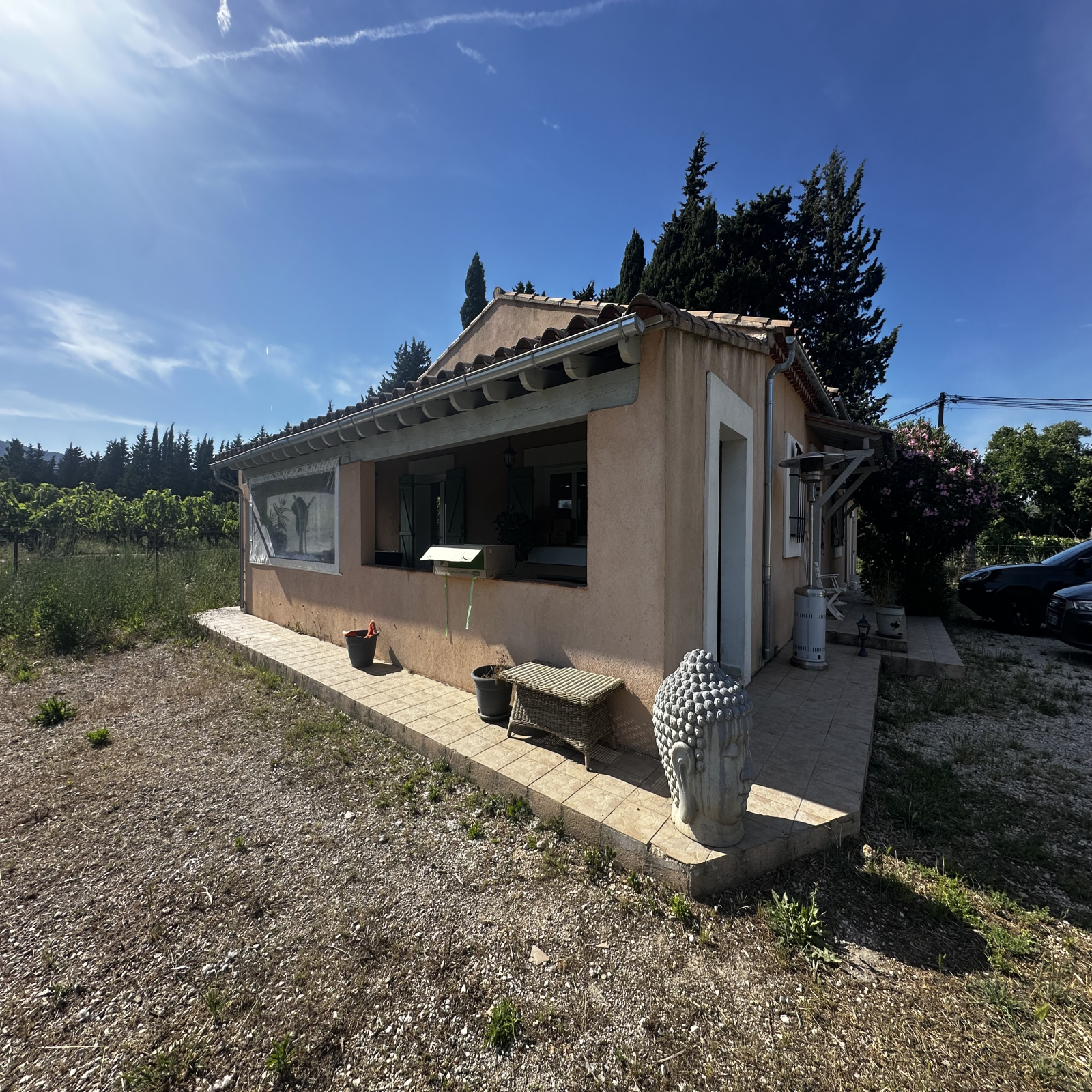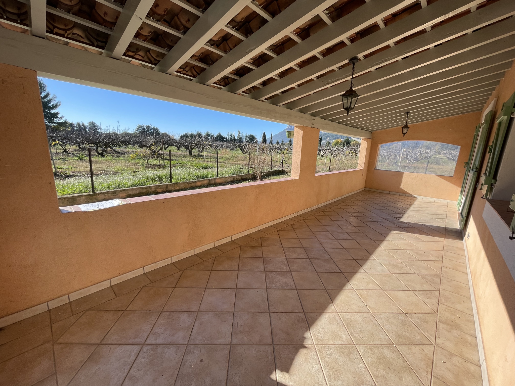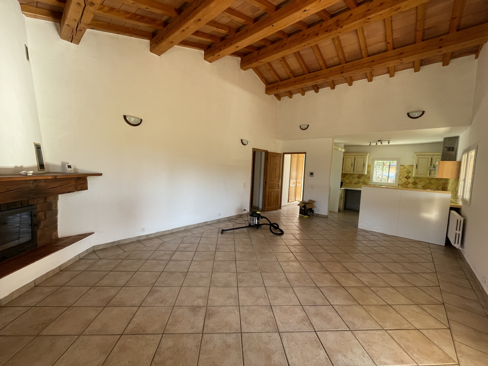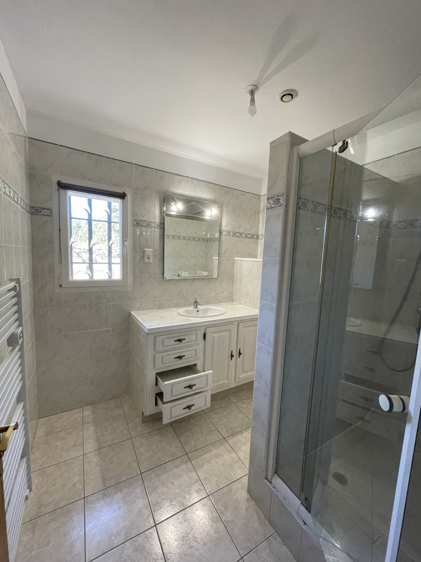 Libre FIN AVRIL - Chemin des Maurettes - Une maison de plain-pied de 110m2 comprenant : hall d'entrée avec placards, séjour avec coin cuisine donnant sur terrasse couverte, dégagement, cellier, wc indépendant, 3 chambres, salle d'eau, buanderie