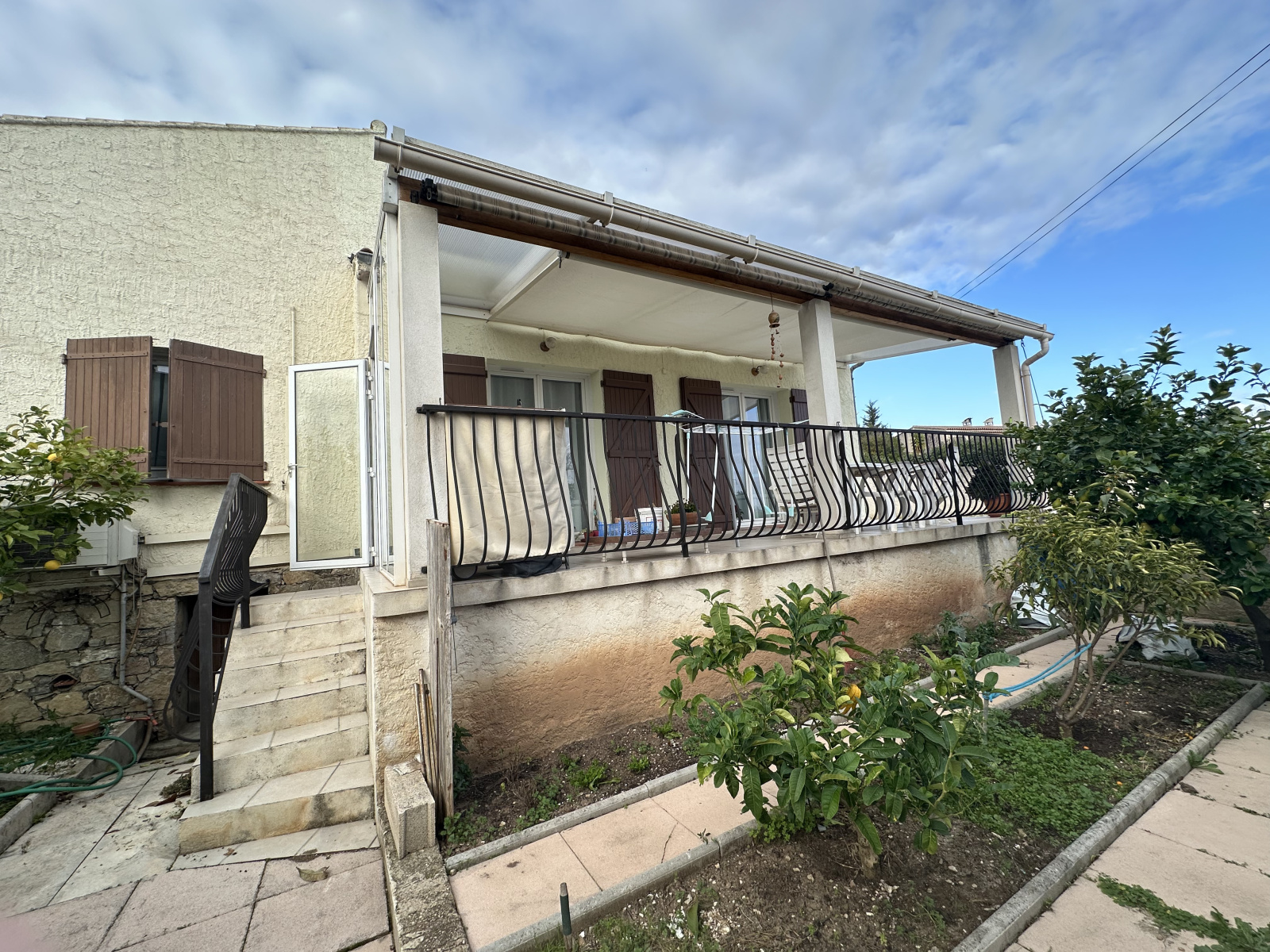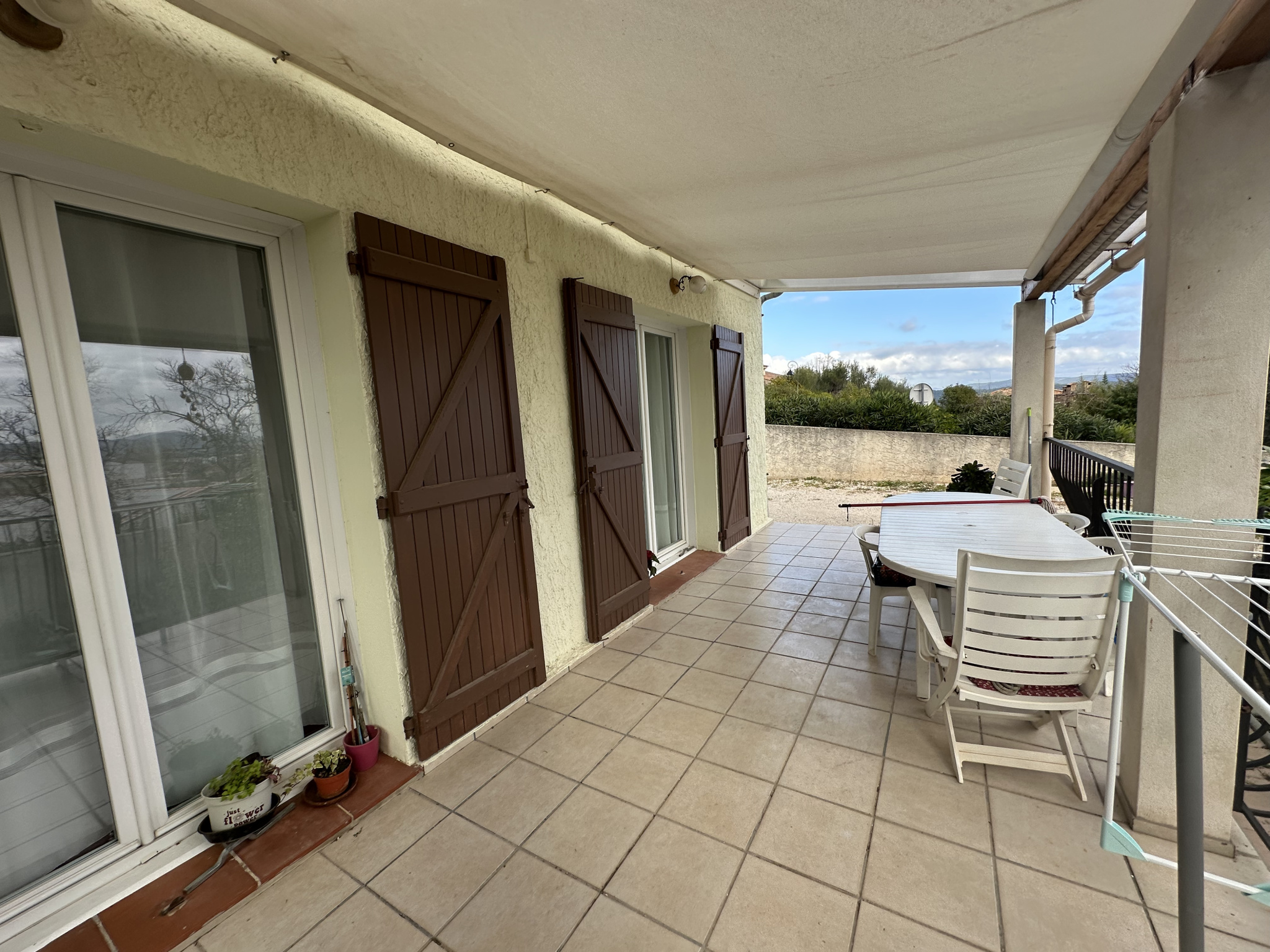 UNIQUEMENT VISIBLE CHEZ SUD AZUR, RARE A LA VENTE, sur belle parcelle clôturée de 370 m2 COQUETTE VILLA PLAIN PIED T3 79.18 m2 + atelier/garage de 14.15 m2 + grande terrasse de 21 m2 plein sud située à DEUX PAS DU VILLAGE -