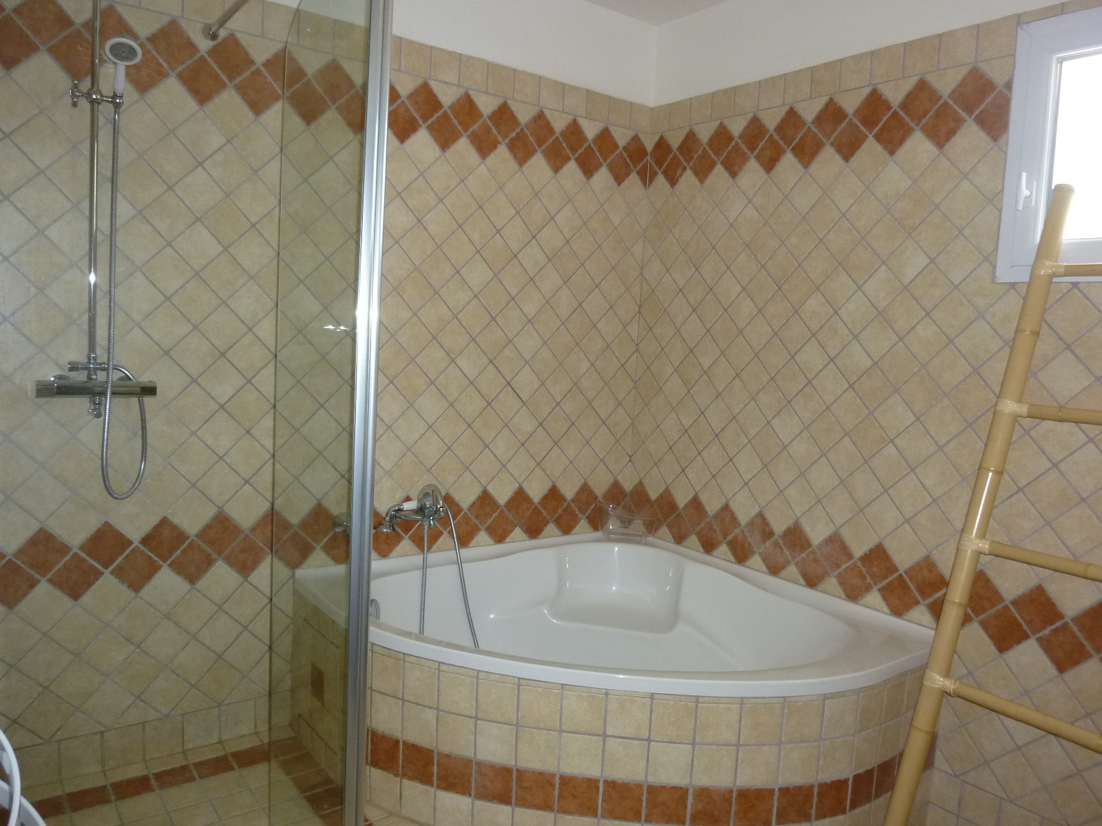 au Rez de sol de 124 m2 qui se compose : grand garage de 45 m2 + atelier de 30 m2, 2 grandes pièces (chambres, bureaux, salle de jeux/cinéma etc....) grande salle d'eau avec wc 10.96 m2 -