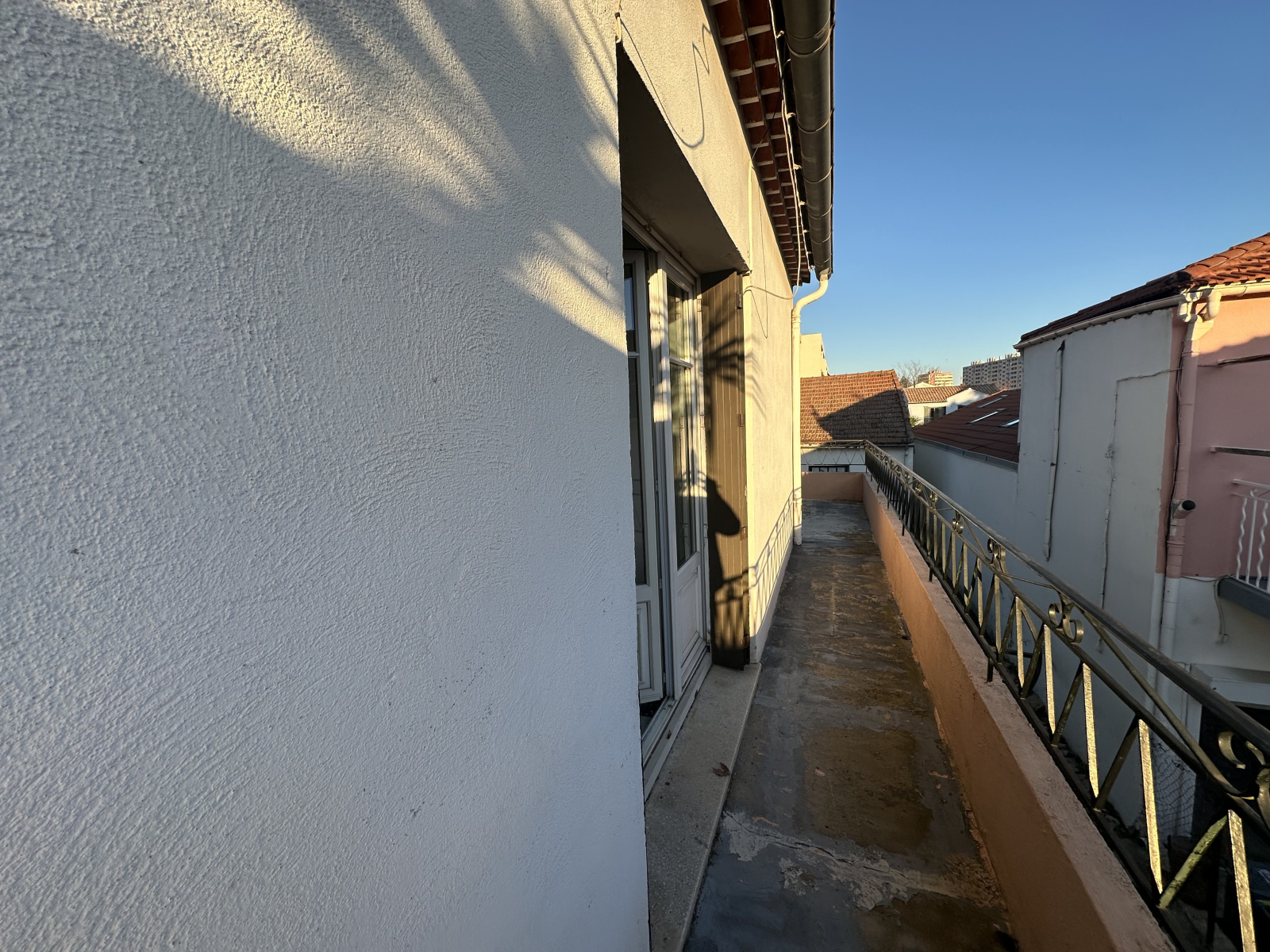 Le logement situé au 1er et dernier étage de la copropriété se compose : grand hall-dégagement, séjour 22.50 m2 env, cuisine, 3 chambres (11.06 m2 - 10.81 m2 et 9.05 m2) salle d'eau rénovée avec double à l'italienne, wc indépendant - le séjour et 1 chambre donnent sur une agréable terrasse et balcon expo Sud - Clim réversible