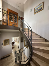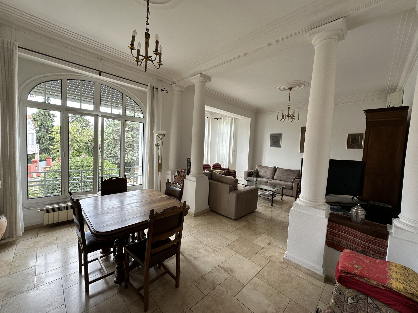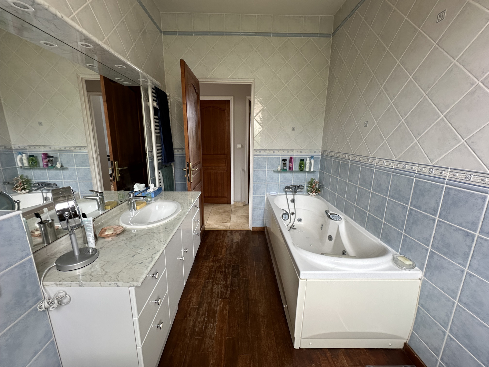 une belle montée d'escalier avec fenêtre et vitrail vous permet d'accéder à l'étage : grand dégagement de 7.63 m2, 3 belles et grandes chambres (17.11 m2, 14.70 m2 et 13.03 m2) avec placards dans chaque pièce, 1 chambre donne sur un balcon, salle de bains avec wc de 6.85 m2 avec grande fenêtre -