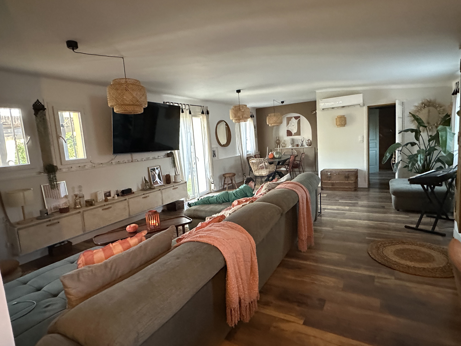 La maison développe des très belles surfaces parfaitement agencées pour une grande famille, (côté ado/invités et côté parents/enfant ) le coeur de la maison est sa grande pièce à vivre avec cuisine pour une surface de 60 m2, la cuisine et ses équipements sont dignes d'un magazine de décoration, bureau de 9 m2 avec accès à l'étage par une belle montée d'escaliers 4 vraies chambres : la grande chambre parentale (douche + grand dressing) pour une surface de 27.13 m2, 2ème chambre avec salle de bains et wc pour une surface de 18 m2, côté ado/invités soit 34 m2 pour 2 chambres avec salle de bains + wc -