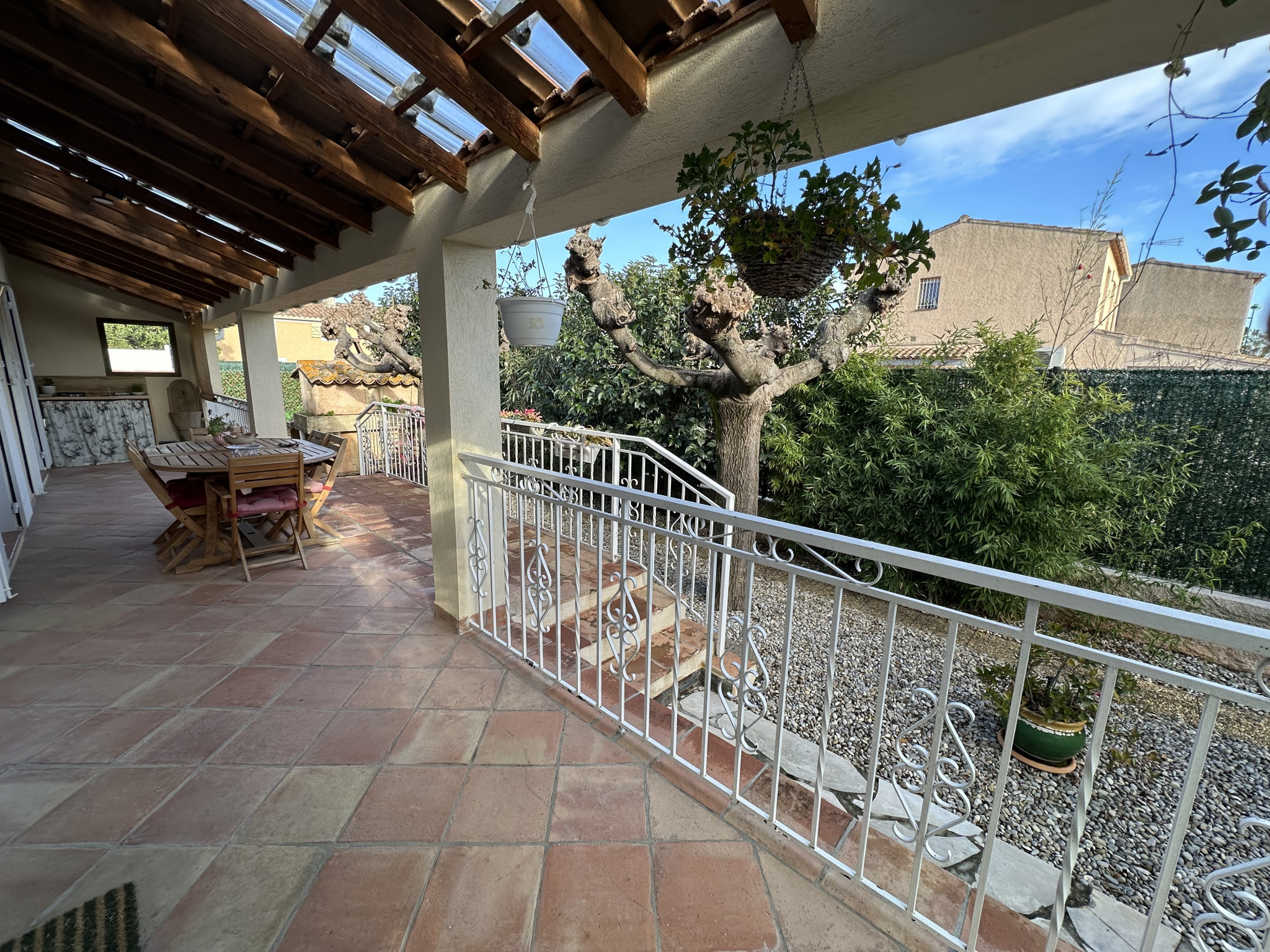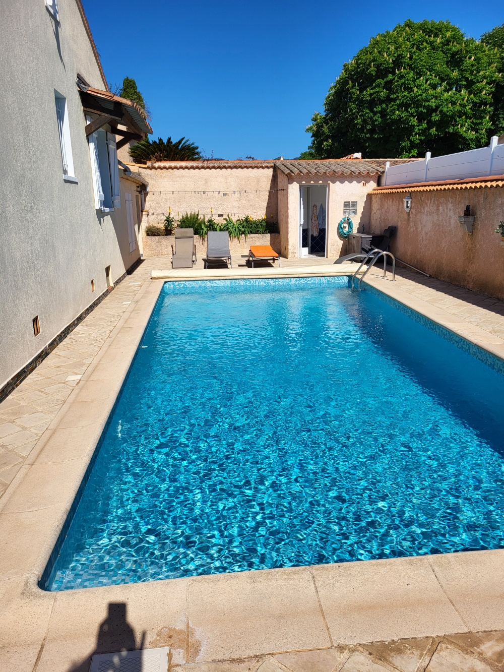 Secteur recherché calme et résidentiel des LAUGIERS - COUP DE COEUR GARANTI sur 540 m2 de terrain, clos, arboré avec piscine, coquette villa de PLAIN PIED de 91 m2 env ENTIEREMENT RENOVEE avec goût et matériaux de qualité + terrasses + garage + GRAND REZ DE SOL (3 pièces) -