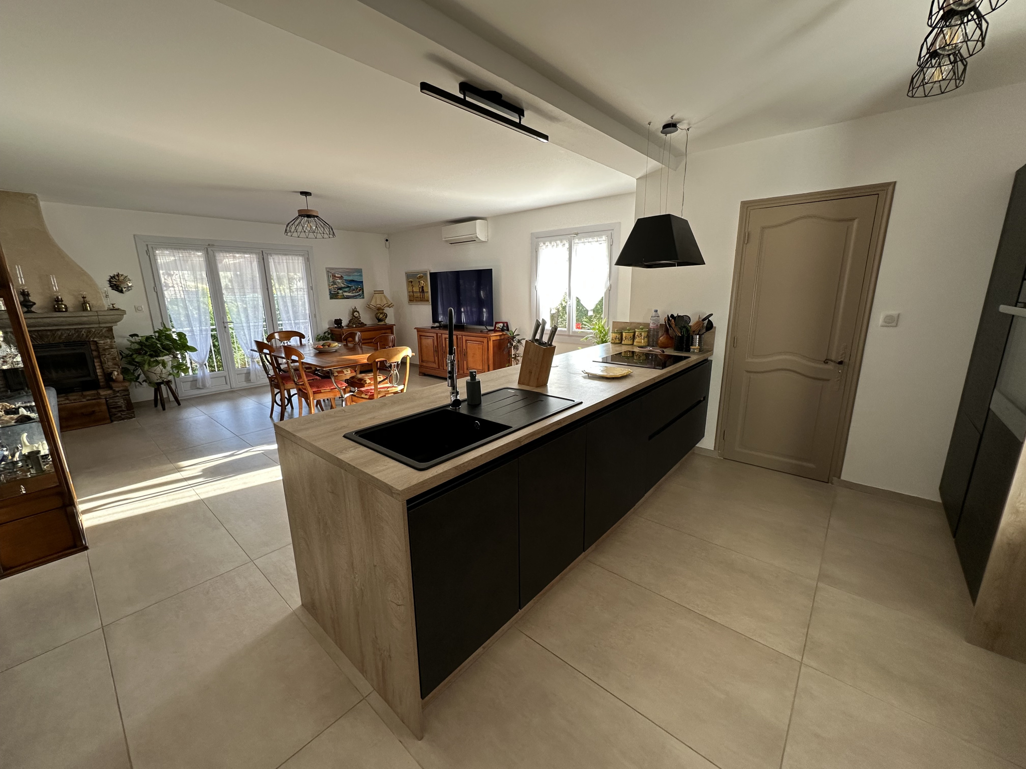 Clim réversible, cheminée insert, four à pizza sur l'espace piscine
