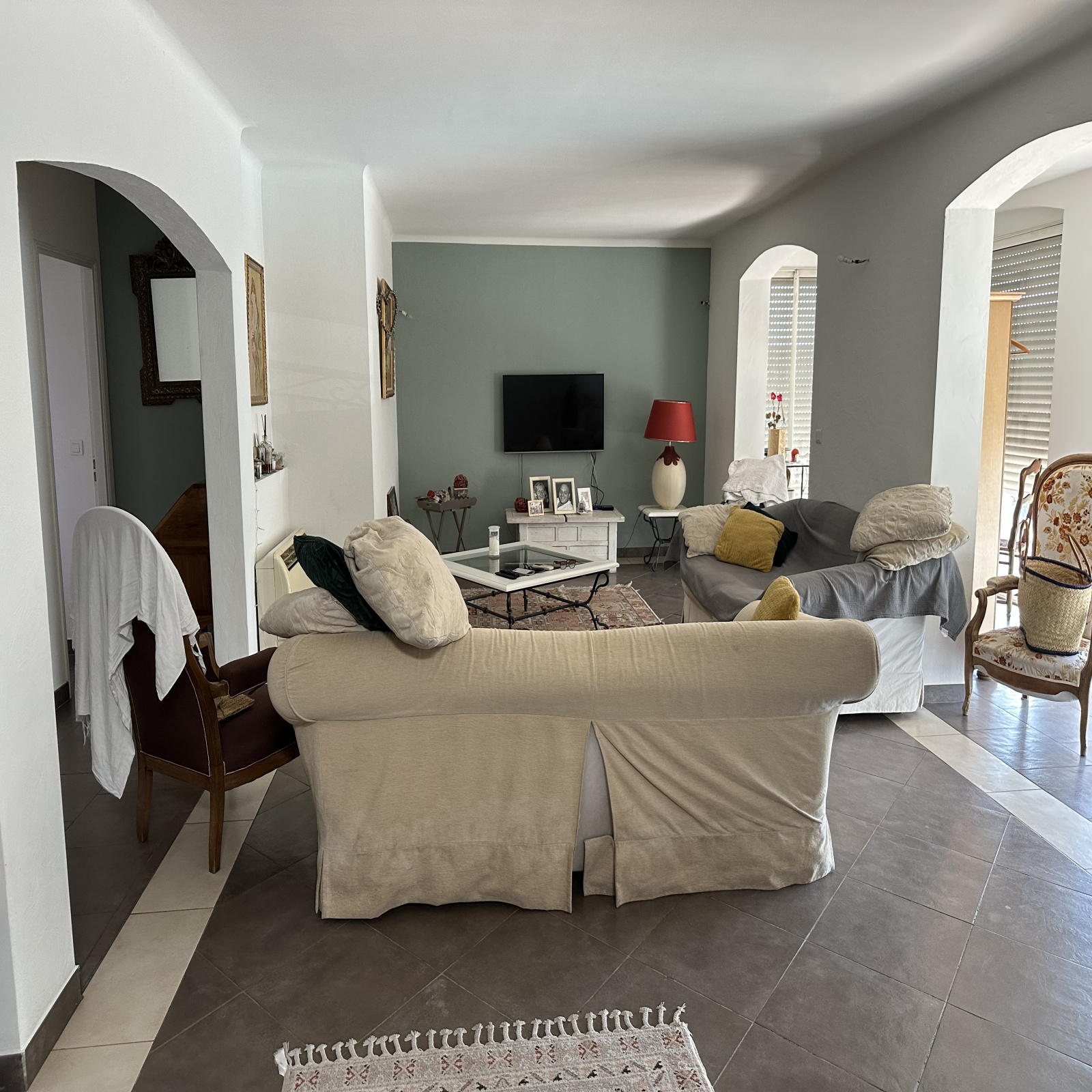 Tout à l'ègoût, eau de ville, climatisation, chauffage à fuel en plus si besoin, double vitrag, Grands volumes, grand terrain, espace piscine très agréable, état général rénové, expo SUD